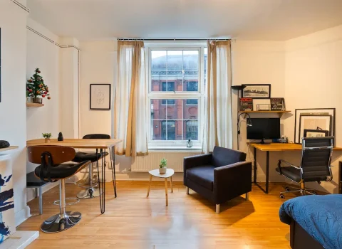 Charming studio on Essex Road in the heart of Angel. Compact, cosy, and efficient at ~37 m² with one bathroom. Endless amenities on Upper Street and Camden Passage, plus excellent transport with an easy walk to Angel Underground. Faces a lively street, so some city noise is normal.