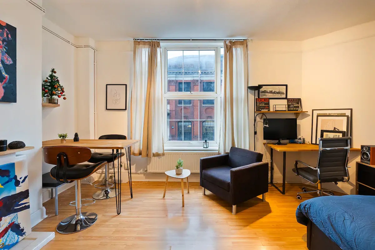 Charming studio on Essex Road in the heart of Angel. Compact, cosy, and efficient at ~37 m² with one bathroom. Endless amenities on Upper Street and Camden Passage, plus excellent transport with an easy walk to Angel Underground. Faces a lively street, so some city noise is normal.